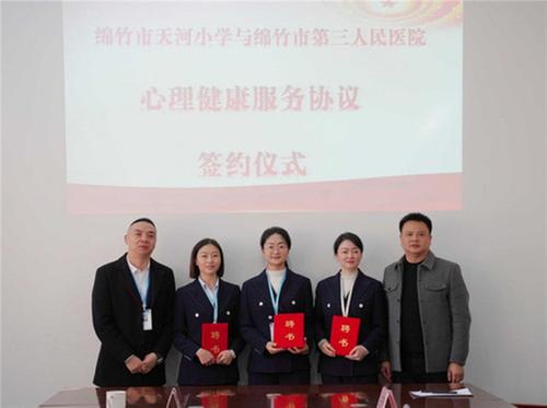 为进一步提升绵竹市儿童青少年心理健康水平,为儿童青少年心理健康教育工作提供专业支持,11月20日,绵竹市第三人民医院与绵竹市天河小学成功举行了心理健康服务签约仪式,标志着双方在儿童青少年心理健康领域迈出了坚实的一步。