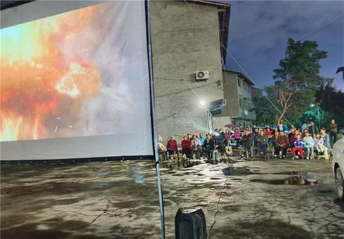当天,随着夜幕降临,村民们纷纷带着板凳朝电影放映处走去,然后静静地期待着电影的播放。